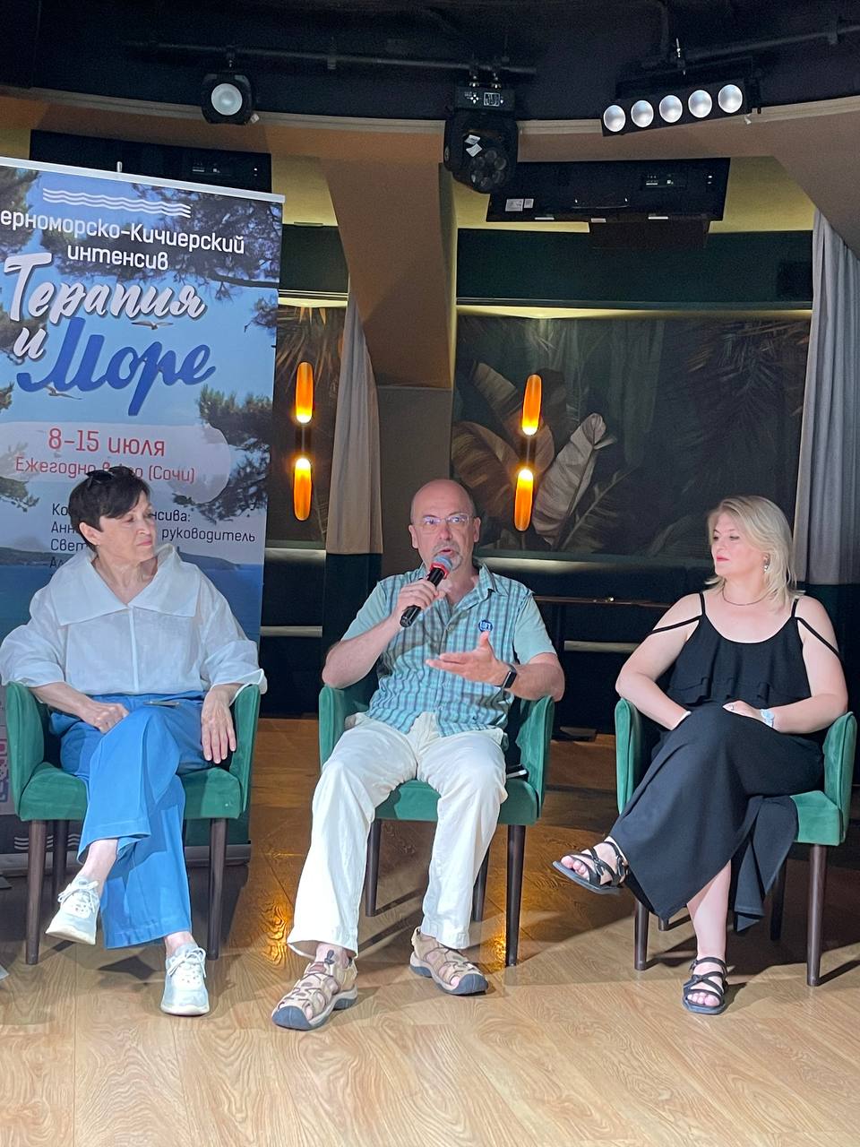 Этим летом я снова еду в составе тренерской команды на Черноморско-кичиерский интенсив «Терапия и Море». Интенсив пройдет с 8 по 15 июля в Лоо (Сочи).